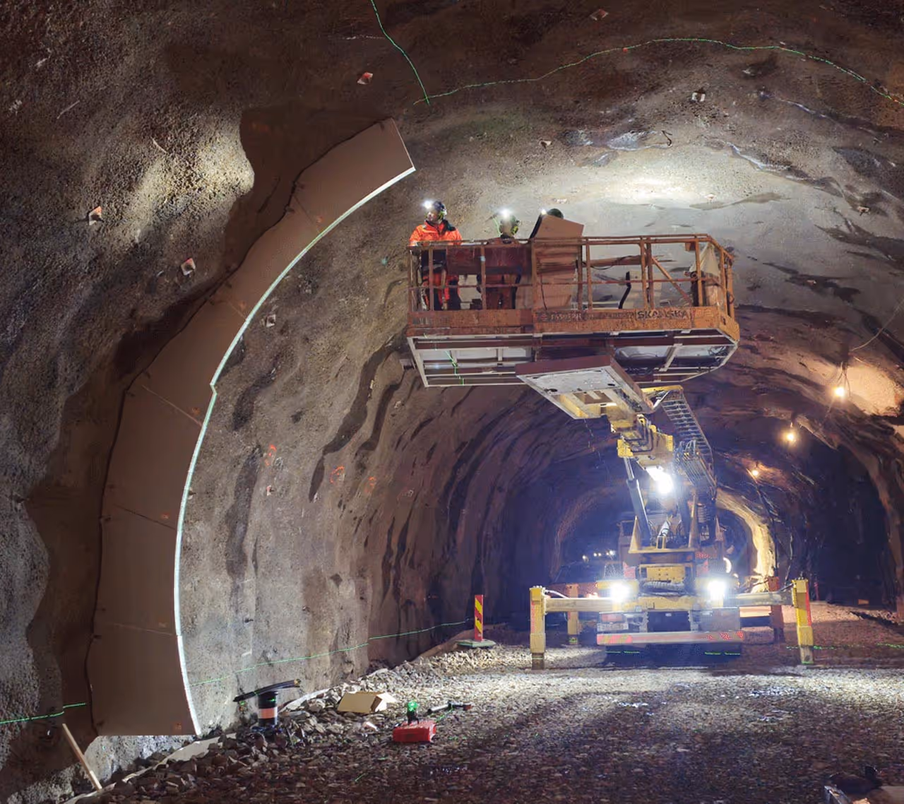The fire barriers are delivered as a complete construction kit based on scans of the tunnel vault, and each module is marked with a number for easy assembly in the correct order.