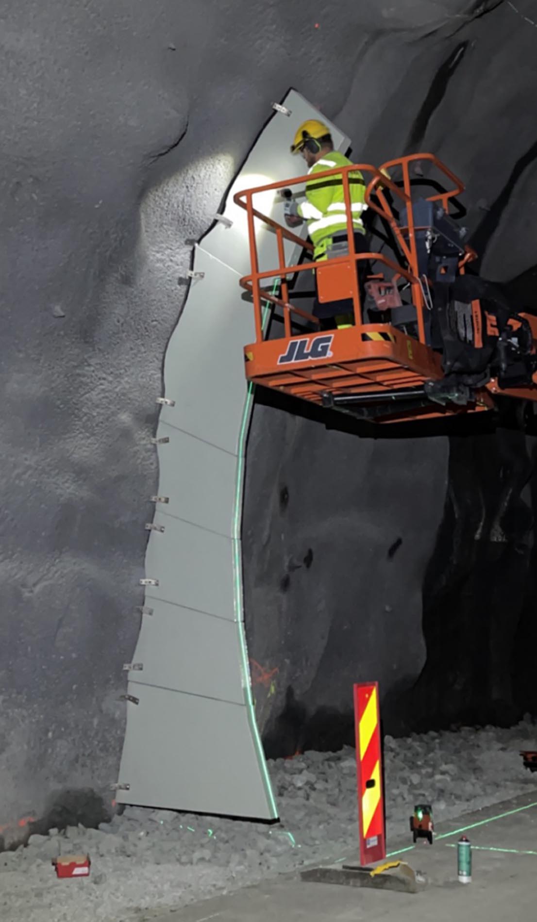 Brannsperrene leveres som et komplett byggesett basert på skanninger av tunnelhvelvet, og hver modul er merket med et nummer for enkel montering i riktig rekkefølge.